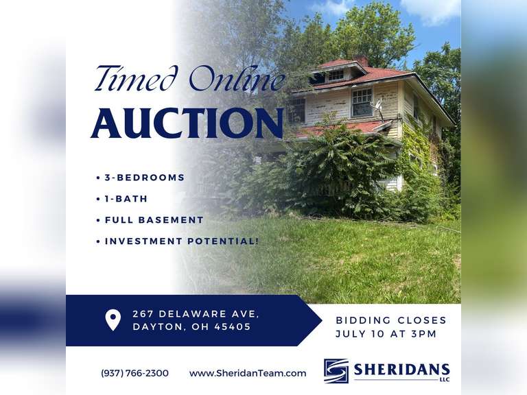 This 3-bed, 1-bath home in west Dayton is full of potential. With 1,152 square feet, a spacious full basement, and a generous backyard, the bones are here for a great project. Located near community parks and major routes, the property offers convenience and neighborhood appeal. With some vision and effort, this could be a solid income-producing rental or a smart resale. Don’t let this chance to unlock equity pass you by—register to bid today!